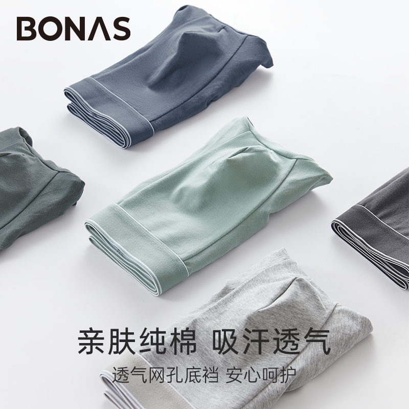 【产品名称:宝娜斯新款纯棉男士平角内裤四角裤四季无痕运动大码短裤衩青少年】