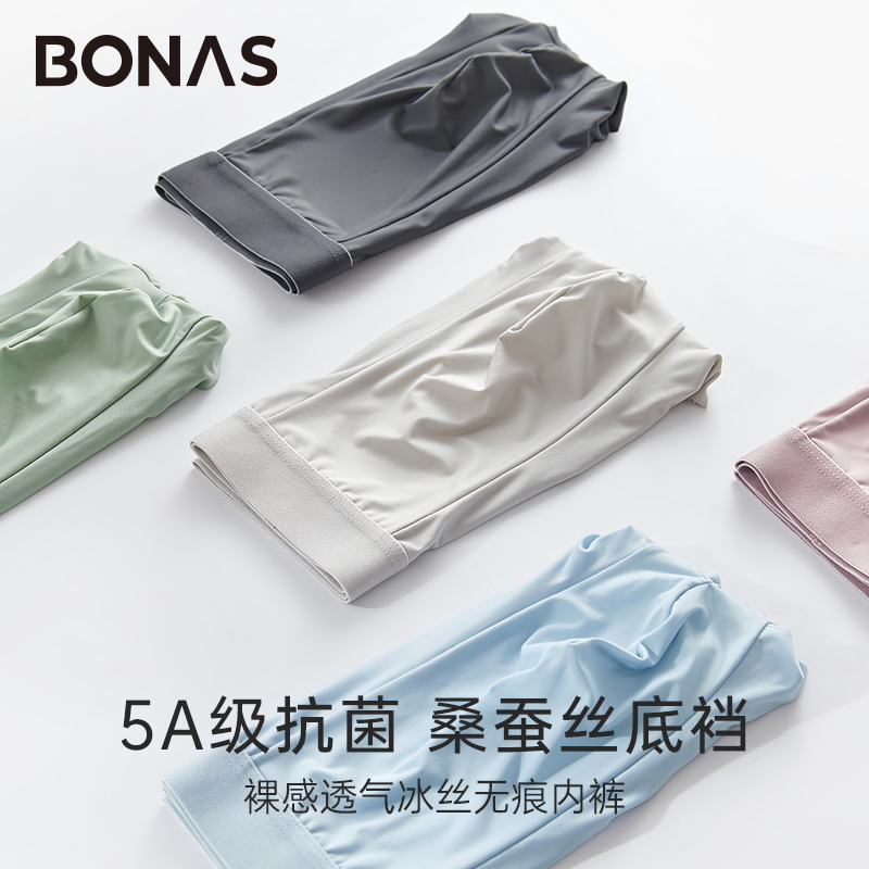 【产品名称:宝娜斯男士内裤男生抗菌四角裤冰丝平角夏季超薄无痕青少年短裤头】