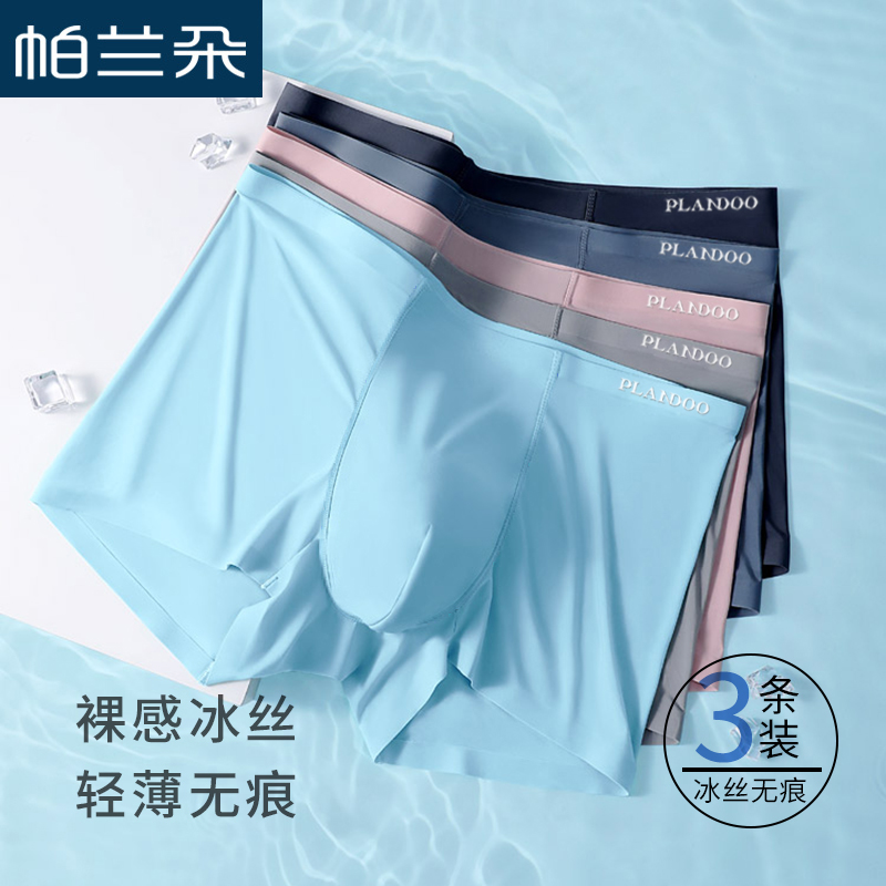 【产品名称:帕兰朵男士内裤男生平角裤冰丝四角裤头男式青年无痕纯棉档短裤衩】