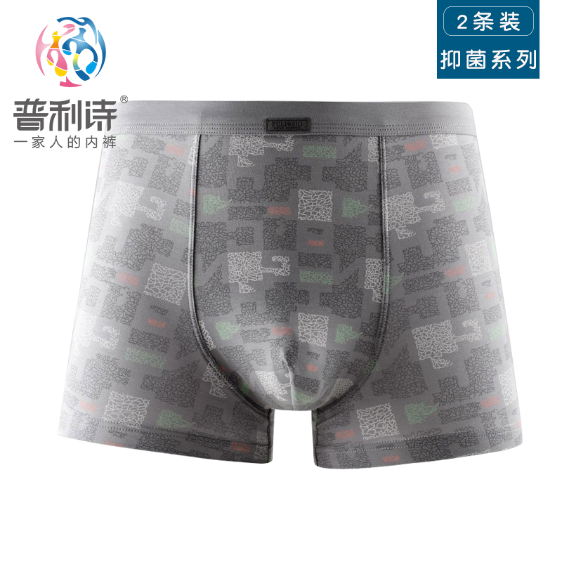 【产品名称:2条装普利诗男士中腰平角裤男莫代尔棉舒适弹力抑菌内裤青年】