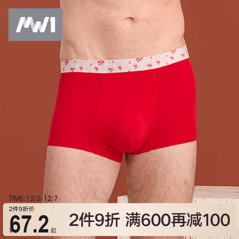 【产品名称:曼妮芬MW1男士莫代尔结婚大红色内裤纹藏联名系列男款平角裤短裤】