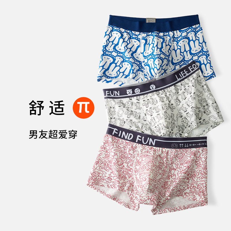 【产品名称:内裤男纯棉艾草抗菌裆无痕卡通印花男生平角裤男士四角短裤头男款】