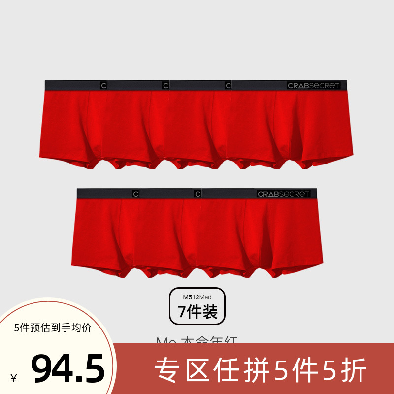 【产品名称:纯色7件装螃蟹秘密男士红色内裤四角平角裤莫代尔中腰裤衩本命年】