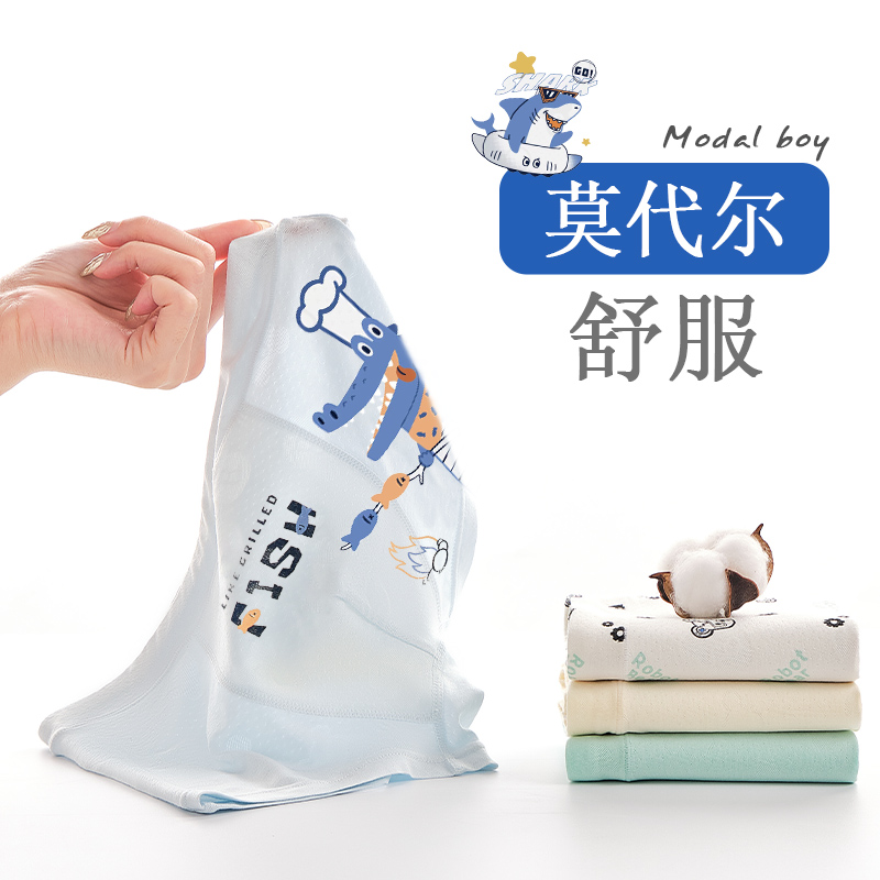 【产品名称:儿童纯棉内裤男童平角莫代尔全棉100%四角冰丝夏季薄款短裤小男孩】