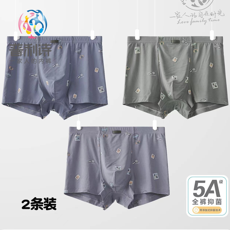 【产品名称:普利诗新款男士内裤柔纱棉亲肤无缝平角裤青年抗菌四角裤2条装】