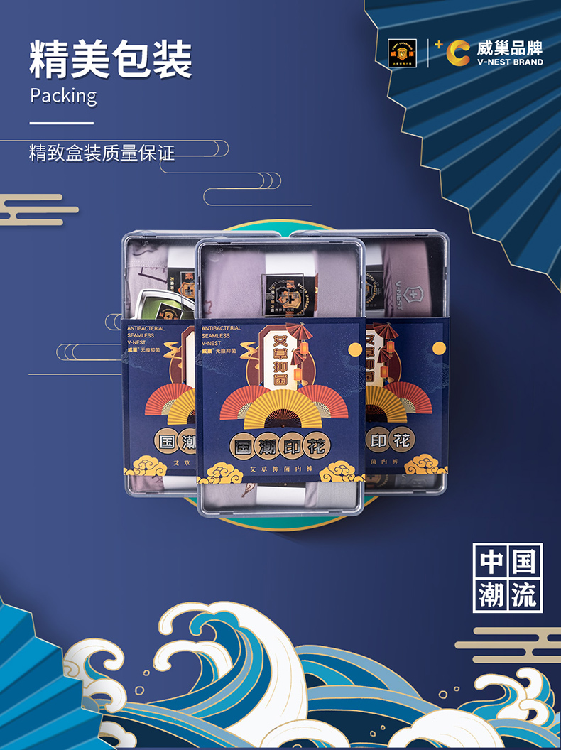【产品名称:威巢艾草抑菌男士平角裤中国风再生纤维透气轻薄内裤3条盒装】