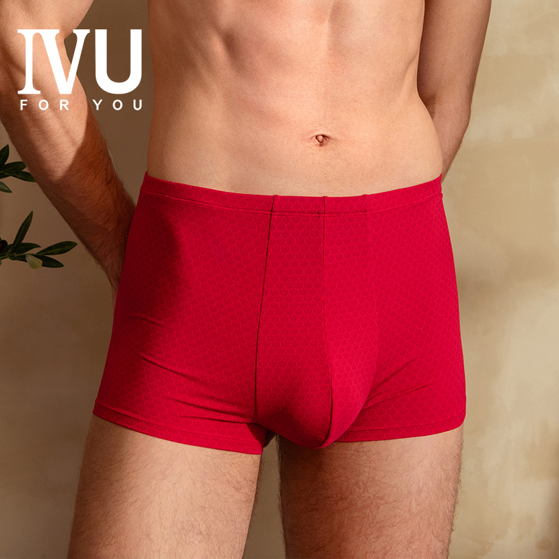 【产品名称:安莉芳旗下IVU男士莫代尔薄款平角裤本命年红色印花内裤UP00070】