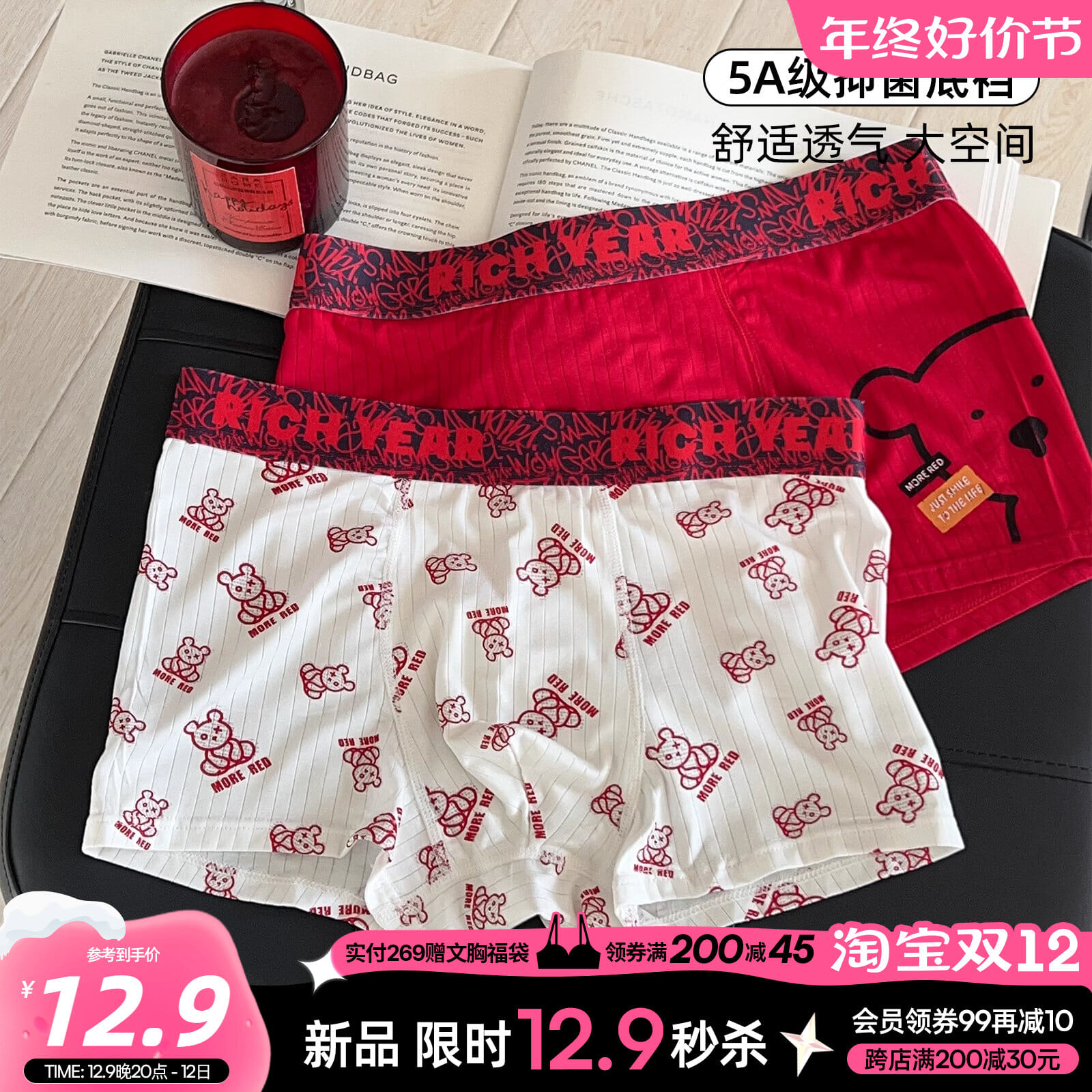 【产品名称:六只兔子男士内裤5A抗菌透气底裆涂鸦卡通平角裤男高腰包臀四角裤】