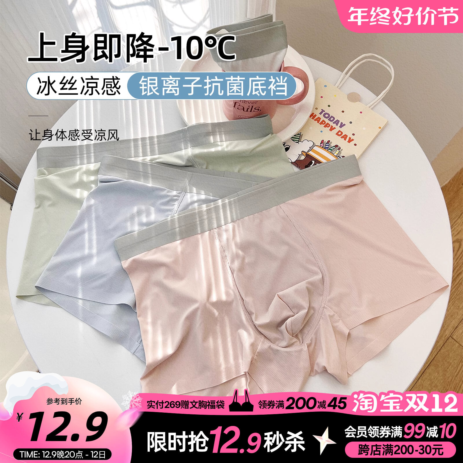 【产品名称:六只兔子男士内裤冰丝透气银皮抗菌短裤大空间无痕中腰四角平角裤】