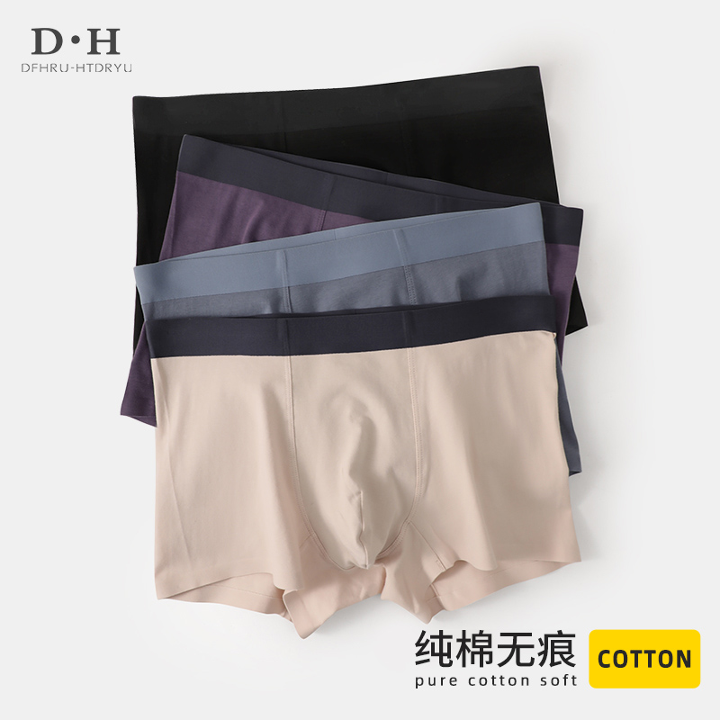 【产品名称:内裤男士内裤秋冬纯棉全棉裆无痕透气抗菌男生四平角裤头青年短裤】