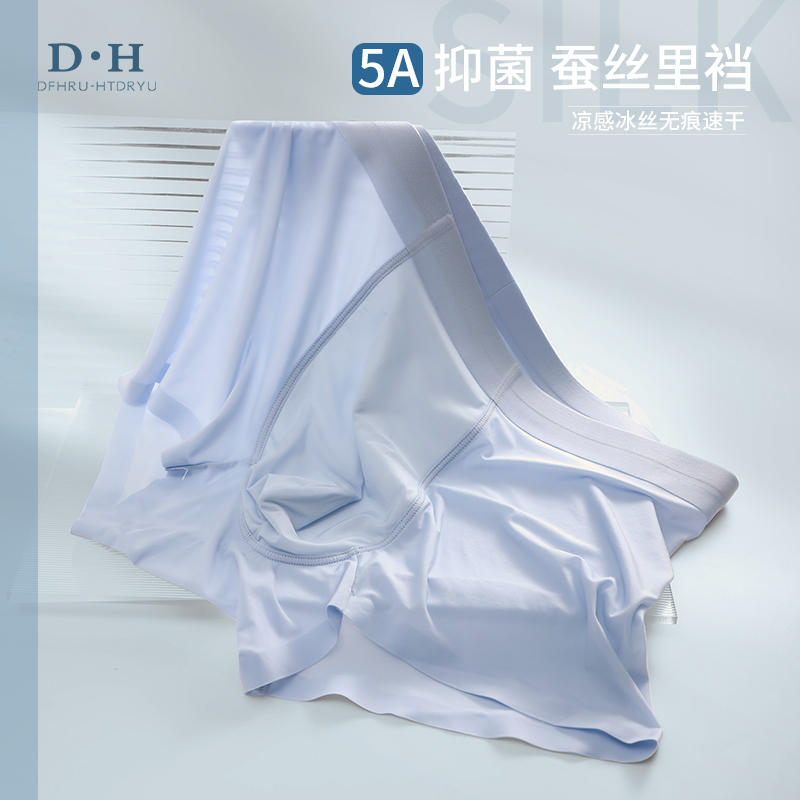 【产品名称:冰丝男士内裤男生平角非纯棉无痕抗菌蚕丝裆透气夏薄款四角短裤头】