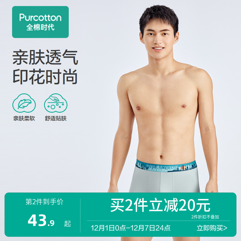 【产品名称:全棉时代男士平角内裤棉感弹力印花时尚短裤棉质亲肤透气吸汗夏季】