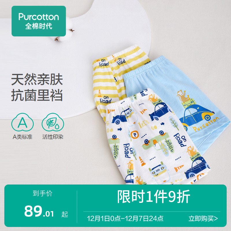 【产品名称:全棉时代抗菌儿童内裤男不夹短裤宝宝四角裤男童内裤纯棉3条装】