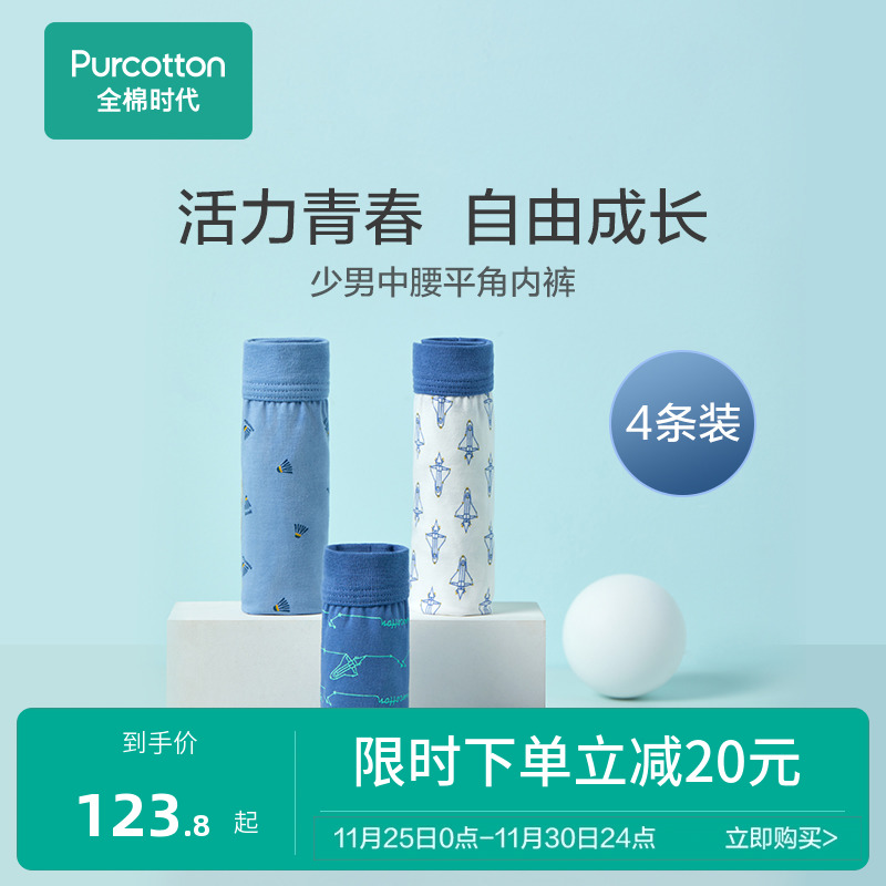 【产品名称:4条全棉时代内裤男四角短裤宽松纯棉青学生平角裤】