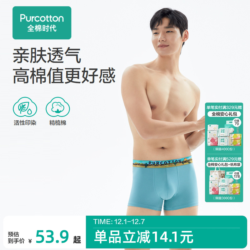 【产品名称:全棉时代男士中腰平角内裤棉感弹力内裤四角内裤透气亲肤男生内裤】