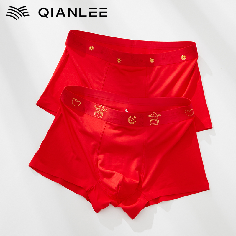 【产品名称:本命年龙年红色内裤男士2023年新款莫代尔无痕四角短裤平角裤男式】