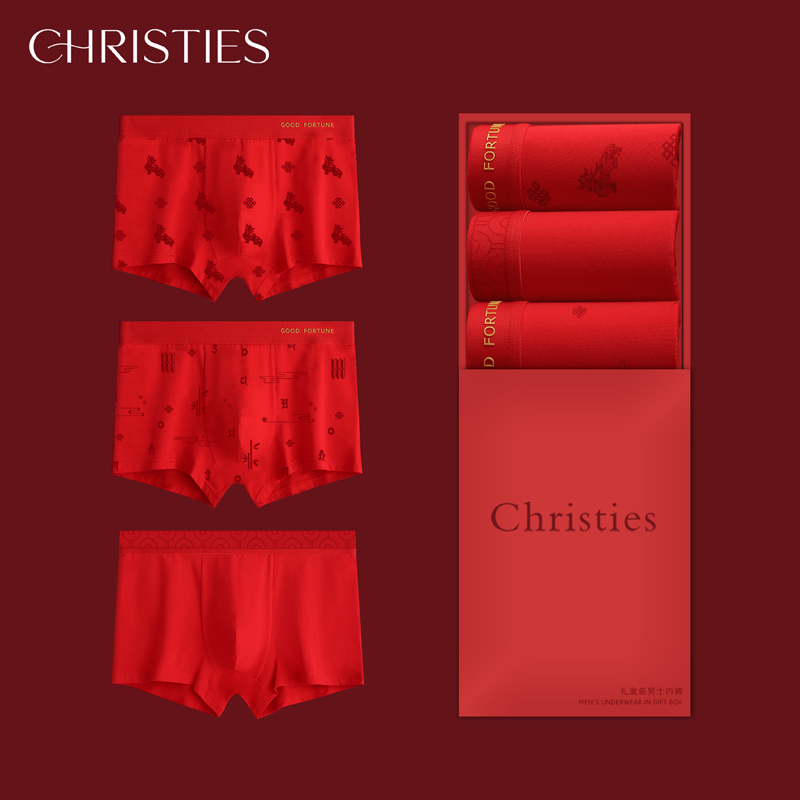 【产品名称:红内裤男本命年大红色结婚四角短裤属龙年礼盒新年礼物】