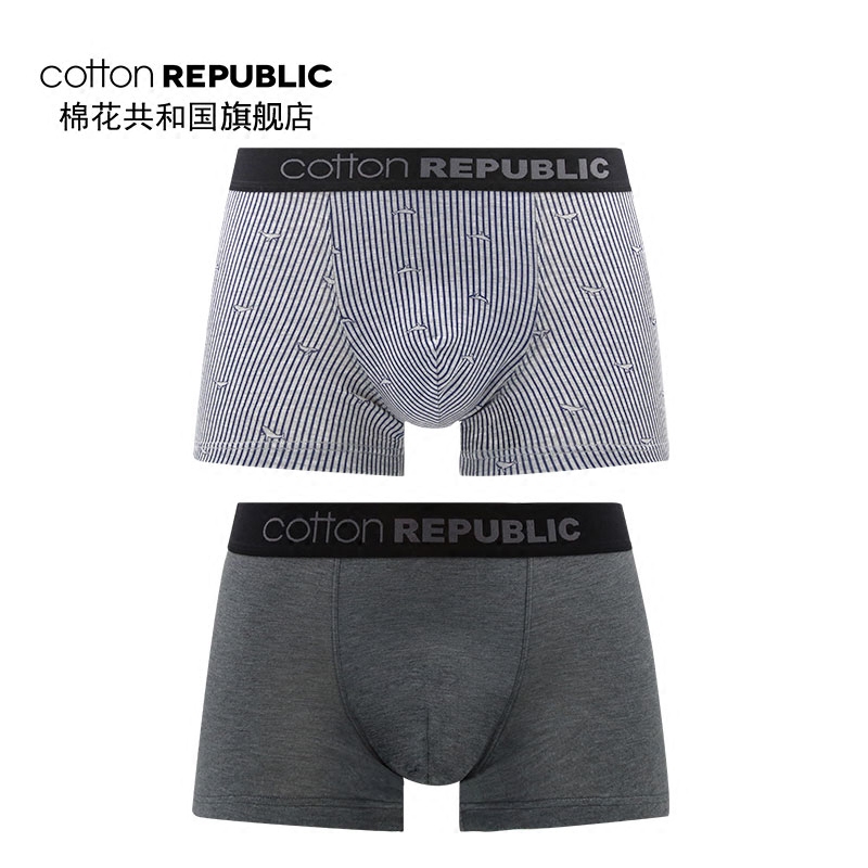 【产品名称:棉花共和国莫代尔男士内裤男中腰平角裤四角裤青年学生内裤2条装】