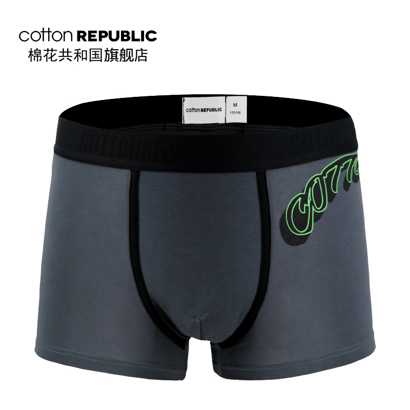 【产品名称:Cotton Republic/棉花共和国男士棉质平角内裤性感印花铁桶一条装】