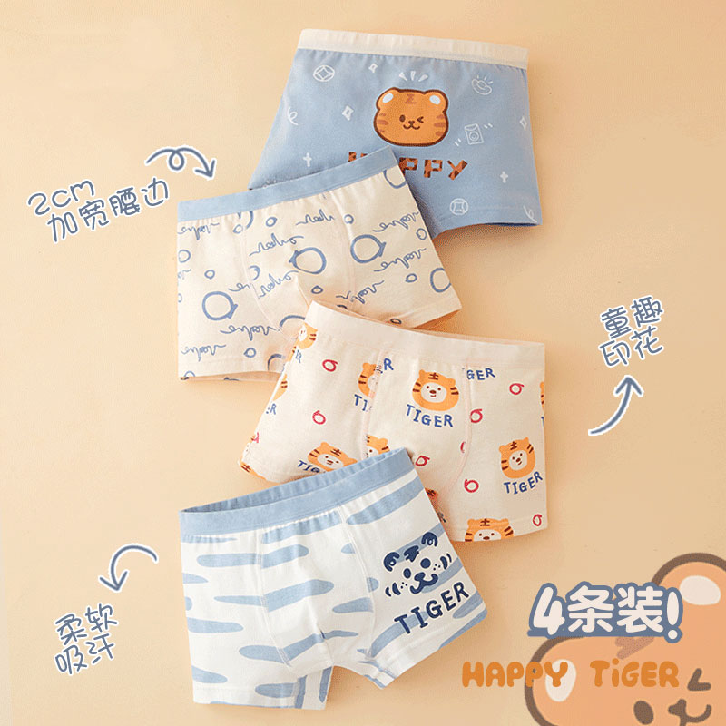 【产品名称:全棉时代男童内裤儿童纯棉平角裤四角短裤男宝宝全棉小童100%底裤】