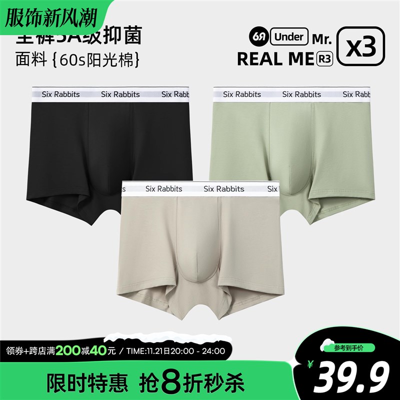 【产品名称:六只兔子3条装内裤男2023新款棉质5A抗菌四角裤透气青少年四角裤】