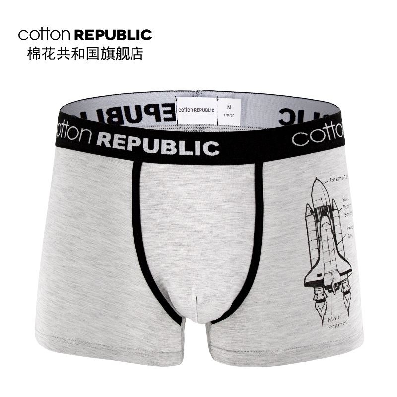 【产品名称:Cotton Republic/棉花共和国2019秋冬新款 火箭印花男士平角内裤】