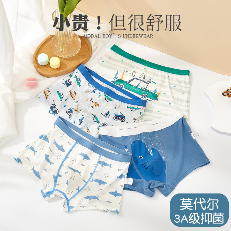 男童内裤莫代尔平角儿童四角短裤夏季薄宝宝男孩冰丝纯棉100%全棉
