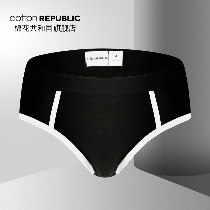 【产品名称:棉花共和国男士三角内裤莫代尔面料性感中腰潮男撞色包边铁桶一条】