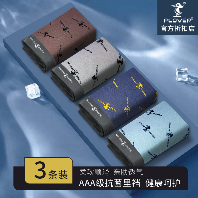 【产品名称:PLOVER男士抗菌内裤柔软舒适中腰平角短裤头男生四角底裤衩薄款潮】