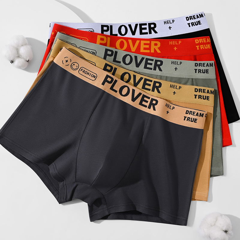 【产品名称:PLOVER纯棉石墨烯抗菌裆男士内裤中腰平四角短裤头高弹透气底裤衩】