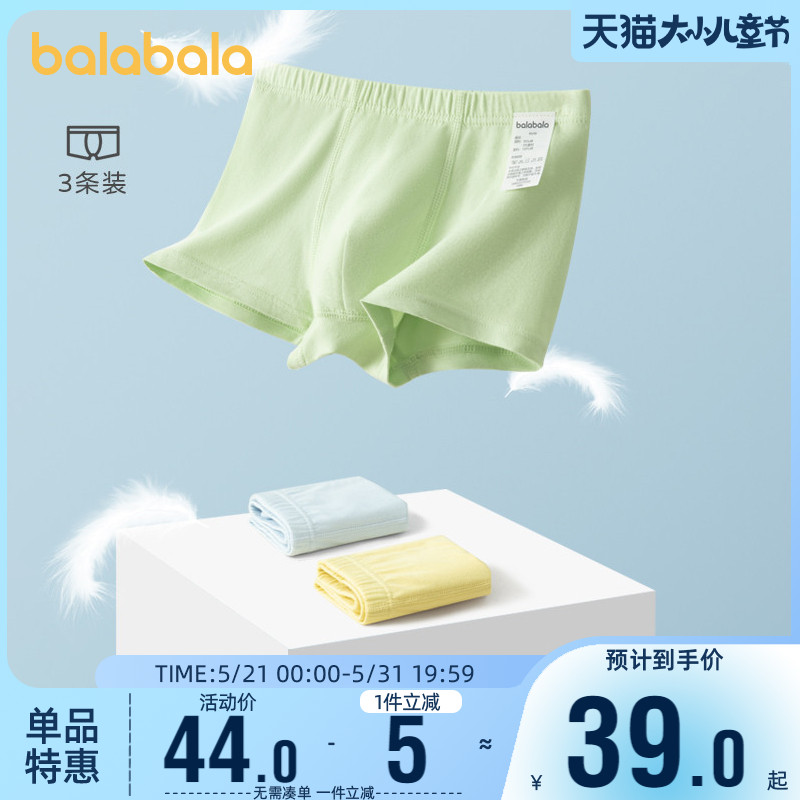 【产品名称:巴拉巴拉男童内裤中大童平角裤纯棉裆底小童四角裤儿童底裤三条装】