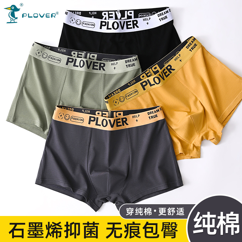 【产品名称:PLOVER纯棉男士内裤石墨烯抗菌中腰平四角短裤头高弹透气裸感裤衩】