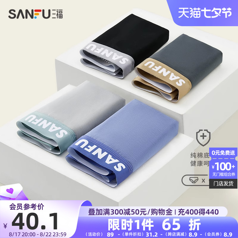 【产品名称:3条装潮牌纯棉男士内裤男平角裤舒适透气潮流U囊袋透气四角短裤头】