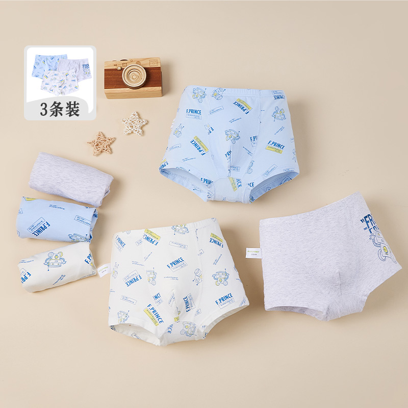 【产品名称:青蛙王子儿童内裤男童四角平角不夹PP短裤卡通萌趣棉(三条装)】