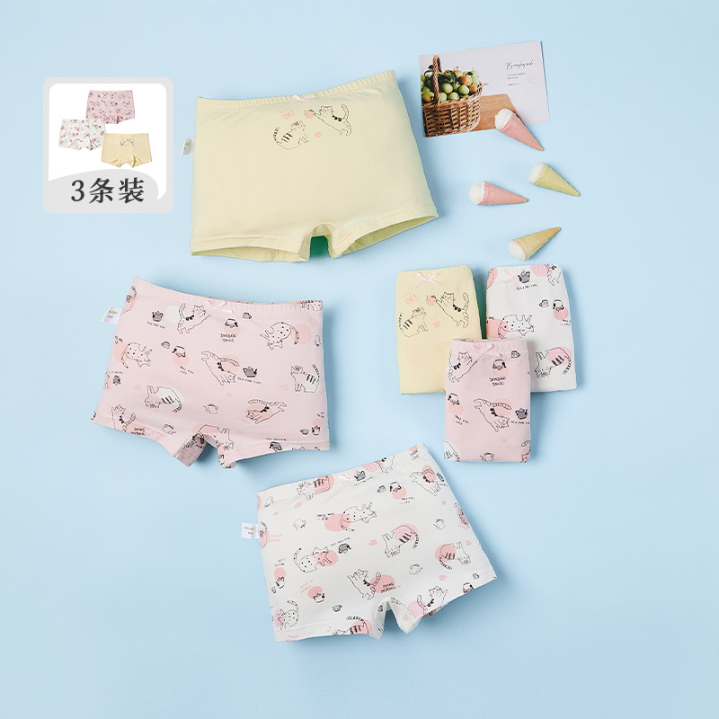 【产品名称:青蛙王子儿童内裤女童四角平角不夹PP短裤卡通萌趣棉(三条装)】