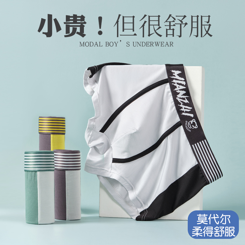 【产品名称:青少年男孩中大童平角四短裤儿童内裤男童纯棉100%全棉冰丝莫代尔】