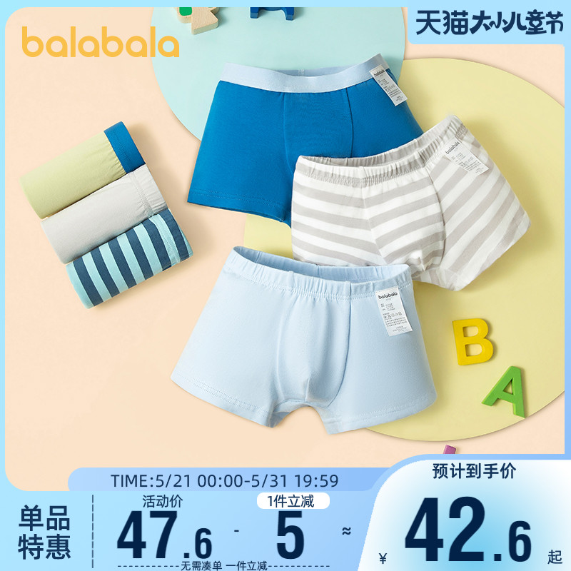 【产品名称:巴拉巴拉男童内裤中大童纯棉裆底四角裤儿童不夹PP平角裤三条装小】