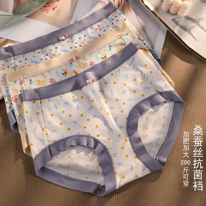 【产品名称:高颜值碎花高腰大码胖mm200斤内裤女士螺纹冰丝印花无痕裸感抗菌】