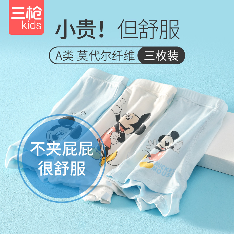 【产品名称:三枪儿童内裤男童莫代尔中大童男孩迪士尼全棉平角裤四角裤短裤】
