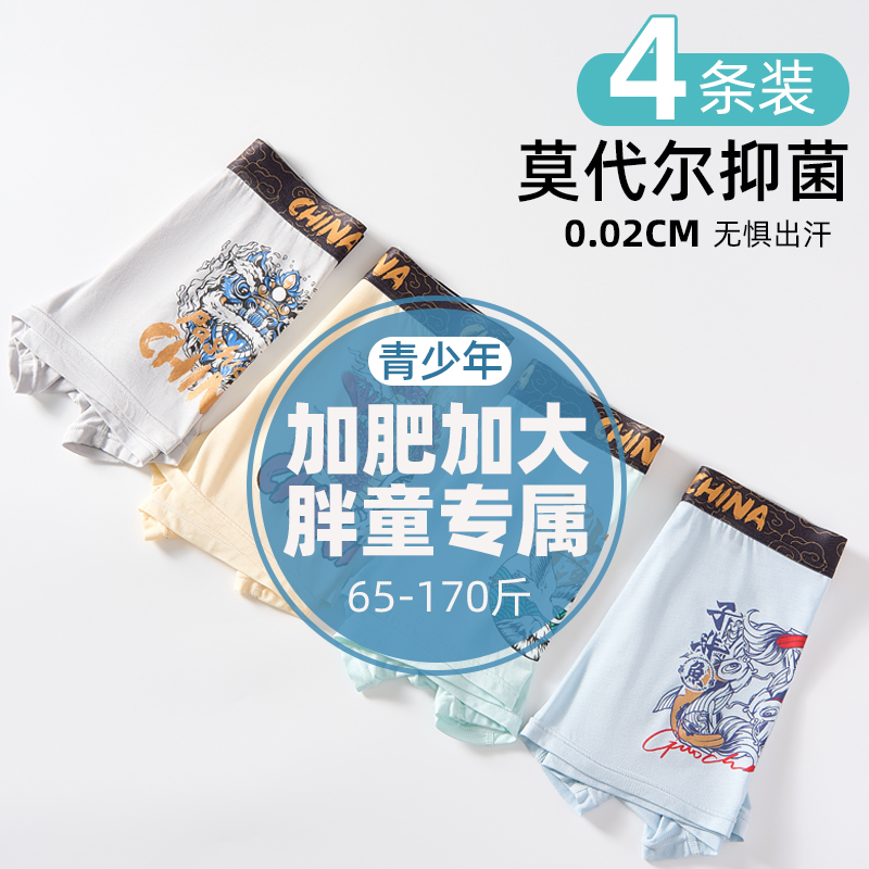 【产品名称:胖童内裤男童加肥加大儿童青少年莫代尔男孩夏季薄款冰丝四角短裤】