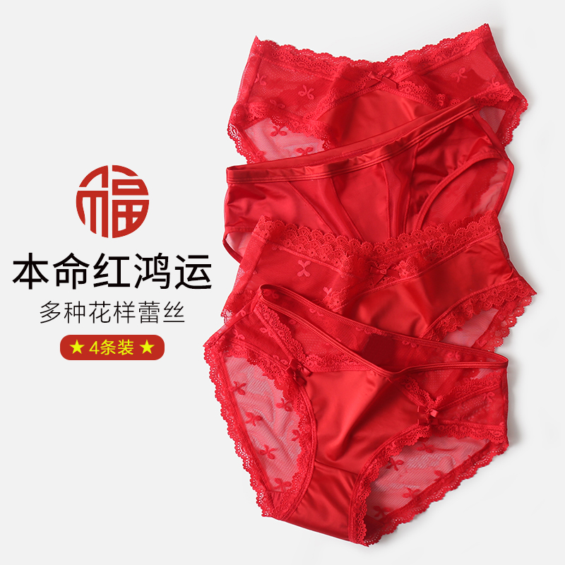 【产品名称:本命年兔年红内裤女蕾丝红色属兔女士性感新款2023爆款少女纯棉裆】