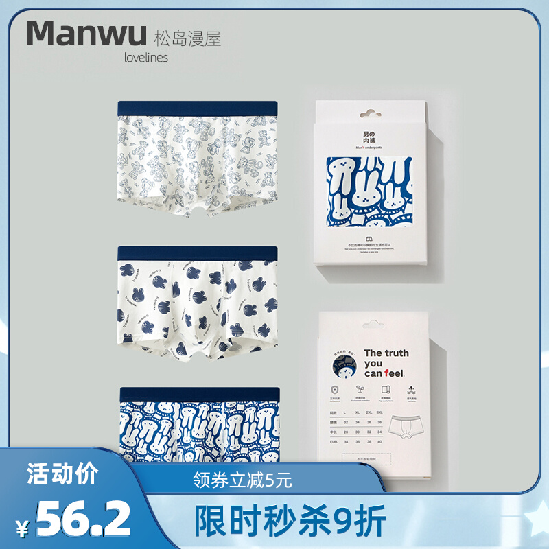 【产品名称:可爱男士内裤纯棉卡通小兔夏季抗菌平角裤男生四角裤衩子送男朋友】