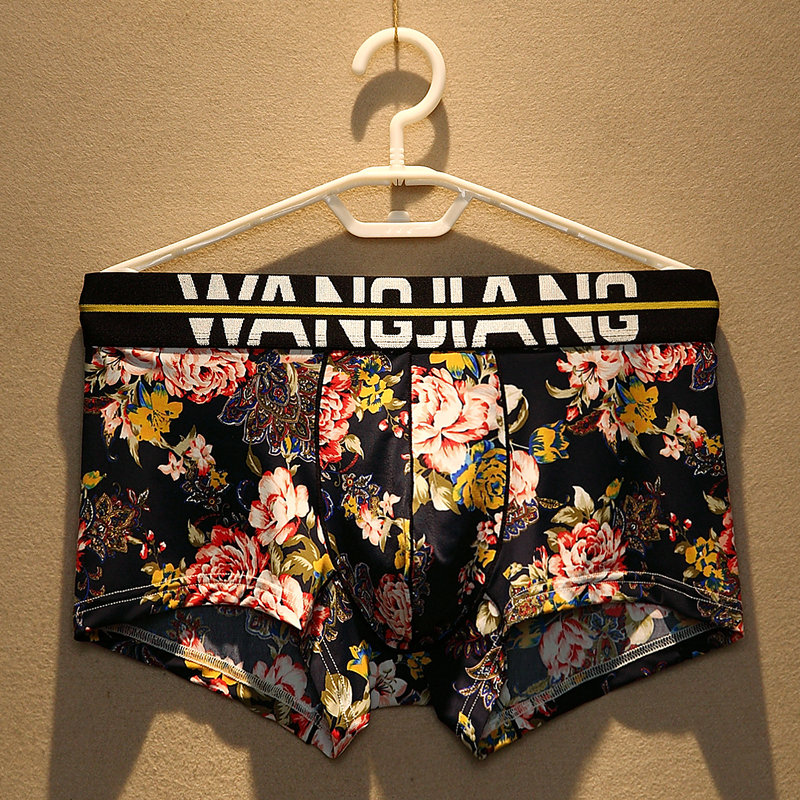 【产品名称:2条冰丝男士内裤超薄真丝透气平角裤性感印花底裤U囊袋四角短裤头】