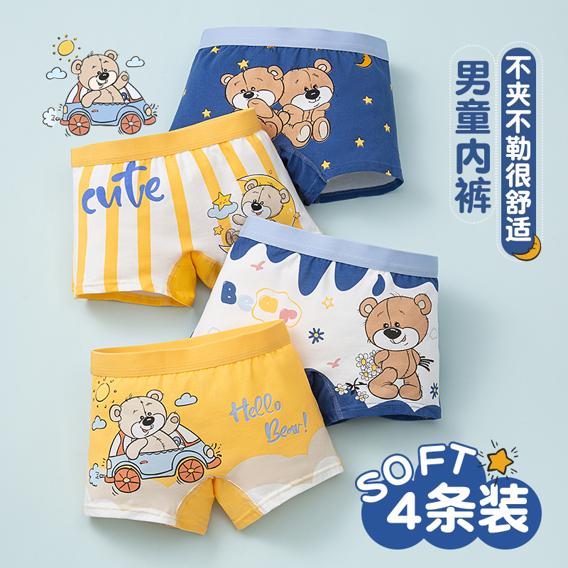 【产品名称:男童内裤纯棉平角小童男孩宝宝小孩全棉四角中大童短裤100%趴趴熊】