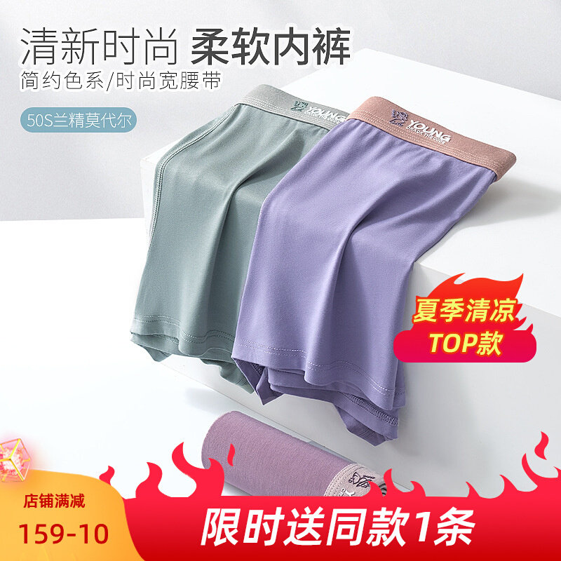 【产品名称:4条时尚男士平角内裤兰精莫代尔无痕透气宽松加大码抗菌裆薄四角】