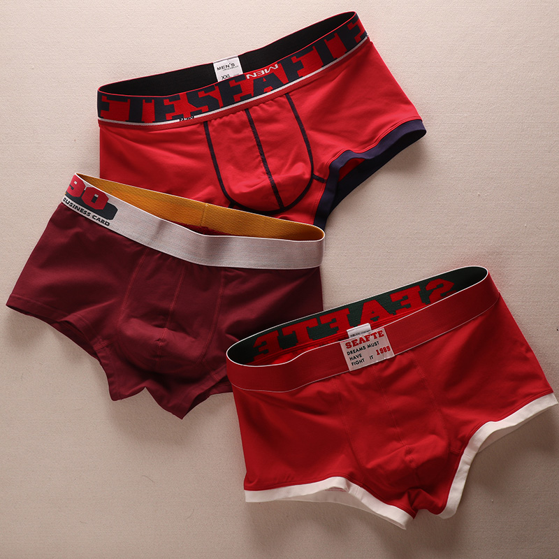 【产品名称:3条 兔年吉祥时髦大红色青年男士内裤本命年纯棉红内裤平角底裤衩】
