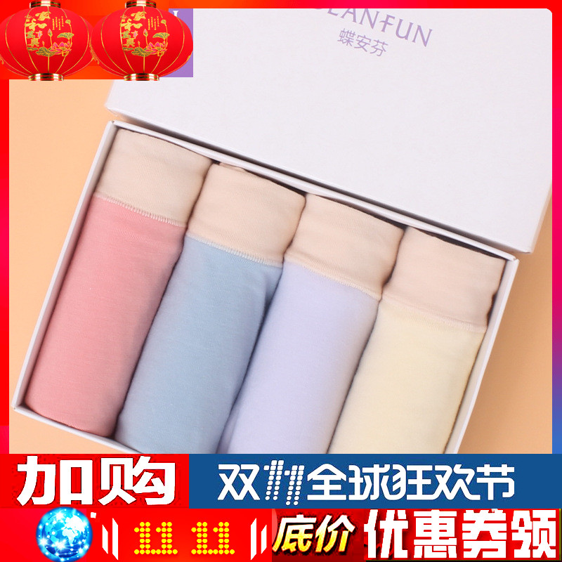【产品名称:四条装蝶安芬女士弹力棉棉内裤13584 中腰纯色透气莱卡棉女平角裤】