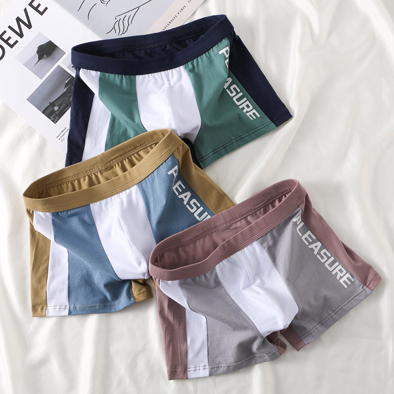 【产品名称:3条内裤男士纯棉平角裤港潮韩版青年运动四角短裤头学生日系底裤】