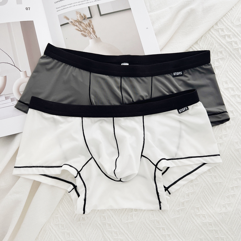 【产品名称:2条装男士内裤平角裤低腰窄边性感冰丝薄款半透明纯色四角裤包邮】