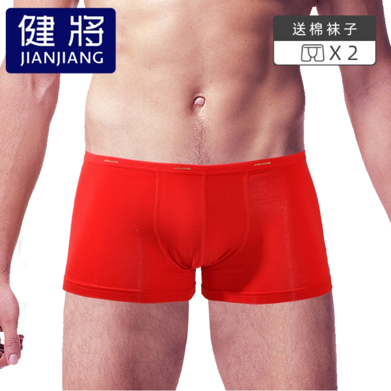 【产品名称:2条装健将男士内裤平角裤竹纤维中腰本命年大红纯色四角结婚喜庆】
